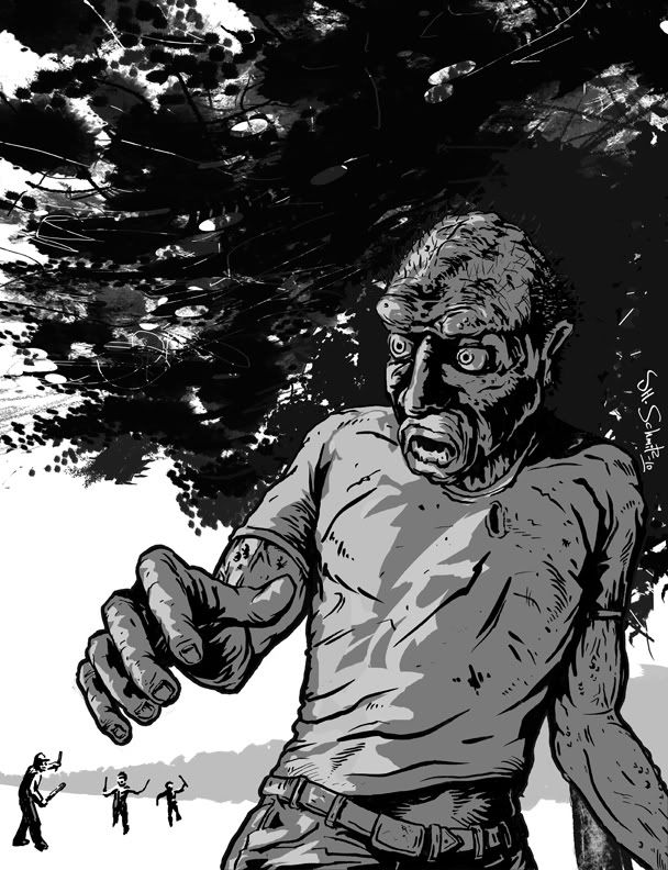 A bunch of the guys, he thought they were his friends - until Chip brought the Axe handle down across his neck. But that was awhile ago now. He's been running for a good forty minutes - the pressure in his skull drawing little attention, compared to the knife wounds and broken glass in his back. " The dogs, oh man, the dogs - the barking - THEIR BRINGING THE DOGS . . . Whats wrong with those guys . . . . . . don't they know it's me . . . . . . . . TIMMY ???? "