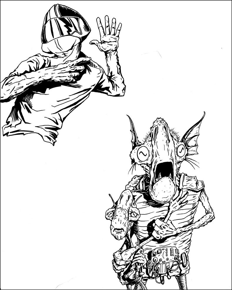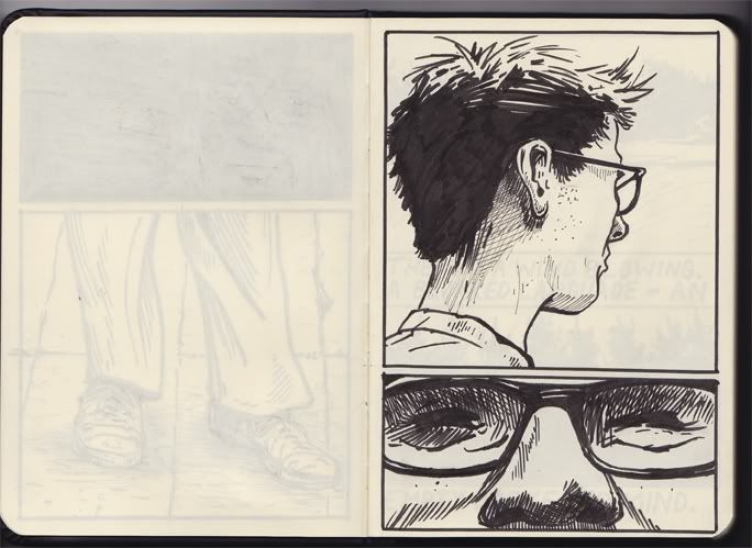 Here's a sampling of some pages from my sketch books from the last 6 months or so. I went with these pages because I feel they embody what I've been going for as of late. A sense of depth in the picture plane, an overlapping of elements within it, and a working with line weights and anatomy. I thought of tying names and small blurbs to the pieces, cause you know - there's ALWAYS a sub-text / story behind EVERYTHING !!! But - I reconsidered and decided to let the pieces simply be.
