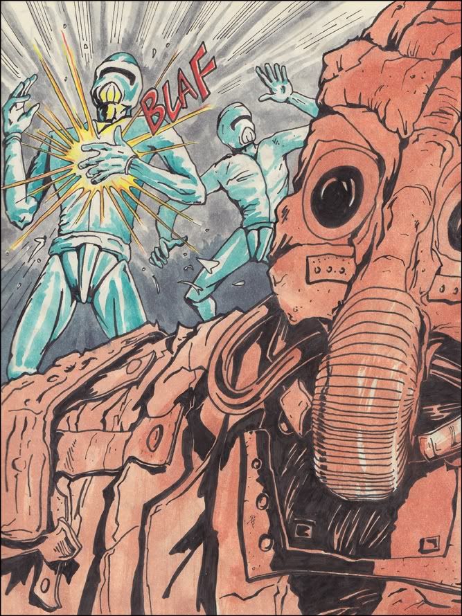 All were done on paper with graphite & markers / dip pens / brush. All coloring ( except for the colored matting ) was done by hand using water colors. Some pencil Crayon for the lettering . . . oh yeah, and lots of coffee !!!